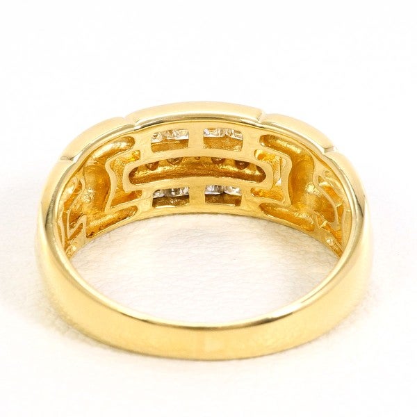 ゴールドの温もりとダイヤモンドの輝きが絶妙に調和した、重厚感あふれるリングです。中央にバゲットカットとラウンドブリリアントカットの天然ダイヤモンドを配し、立体的でリズミカルな輝きを放ちます。品格と存在感を兼ね備えた一本は、指元に確かな風格と洗練を添える逸品です。