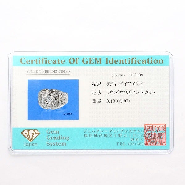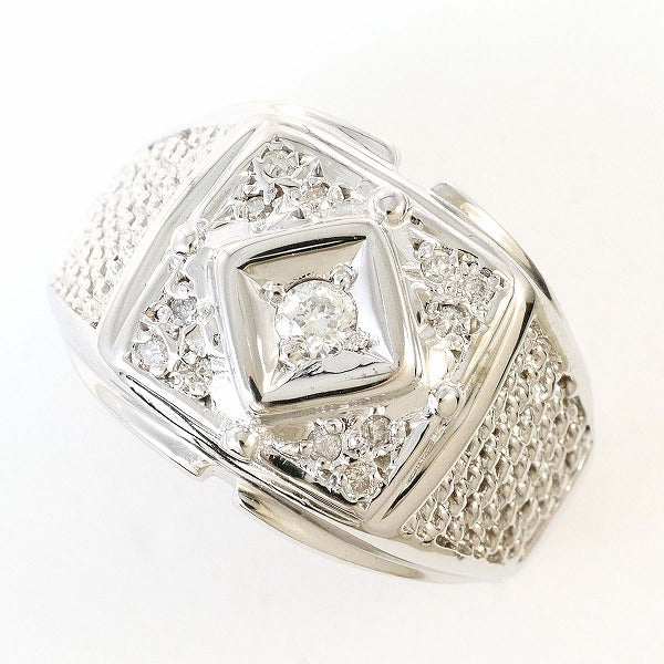 K14 14金 WG ホワイトゴールド リング・指輪 18号 ダイヤモンド 0.19 カード鑑別書 総重量約6.4g