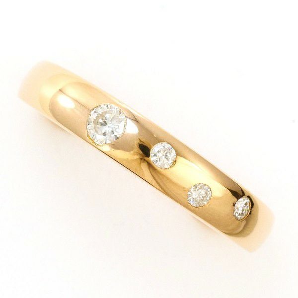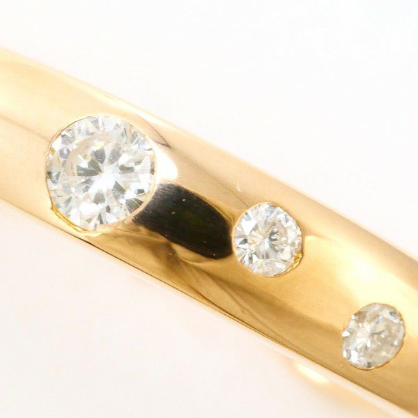 こちらのリングは、上質なゴールドのなめらかな光沢が手元を美しく引き立て、等間隔にあしらわれたダイヤモンドが繊細ながらも確かな存在感を放っています。シンプルなデザインの中に品格が宿り、飽きのこない魅力を持ちながら上質さをしっかりと感じさせる、非常に完成度の高い一本です。