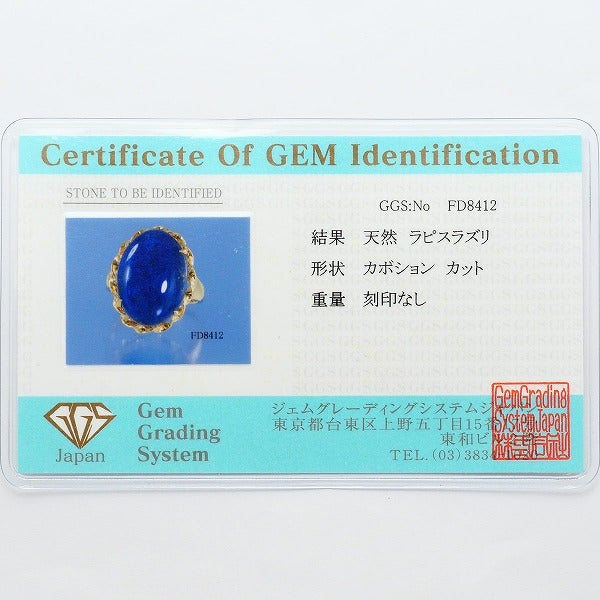 K18 18金 YG イエローゴールド リング・指輪 12号 ラピスラズリ カード鑑別書 総重量約5.0g