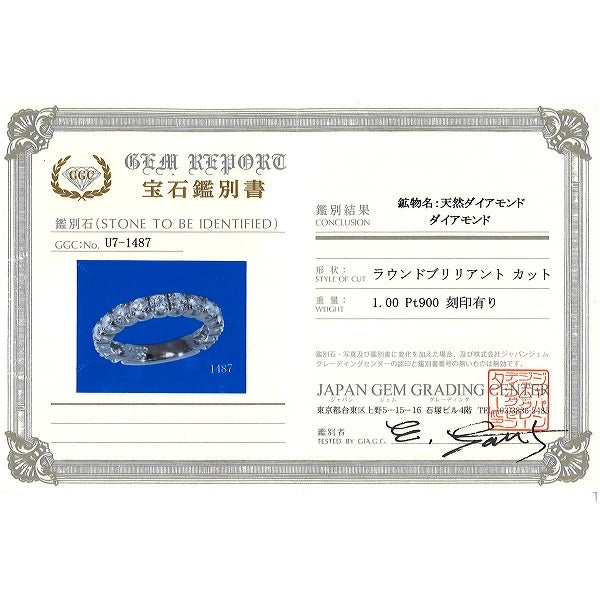 PT900 プラチナ リング・指輪 5号 ダイヤモンド 1.00 鑑別書 総重量約3.7g