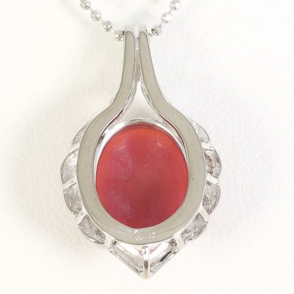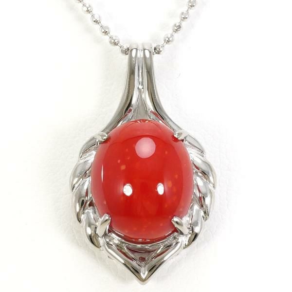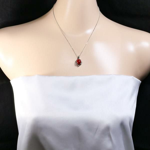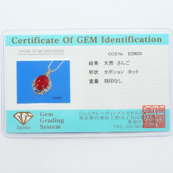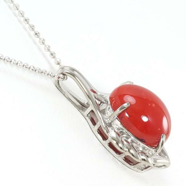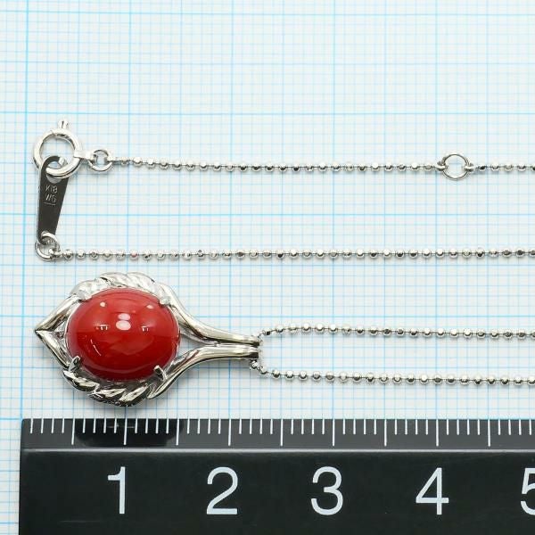 天然さんごの鮮やかな赤色が印象的なペンダントです。カボションカットによる滑らかな光沢が上品で、見る角度によって深みある艶を感じさせます。ホワイトゴールドの枠が石の美しさを引き立て、繊細なデザインが全体に洗練された印象を与える魅力的な一品です。