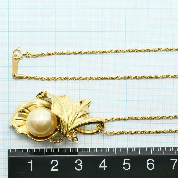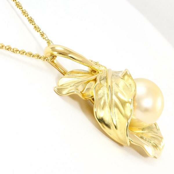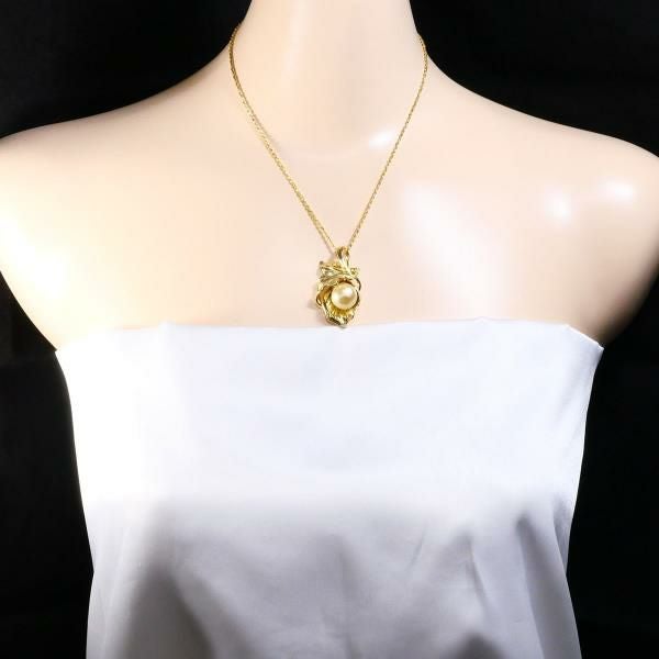 南洋真珠をあしらったペンダントは、真珠の滑らかな光沢が美しく、ゴールドのリーフモチーフが上品に包み込むように仕立てられています。繊細なダイヤモンドの輝きがアクセントとなり、全体に高級感を添えています。職人の技が細部まで生きた完成度の高い逸品です。