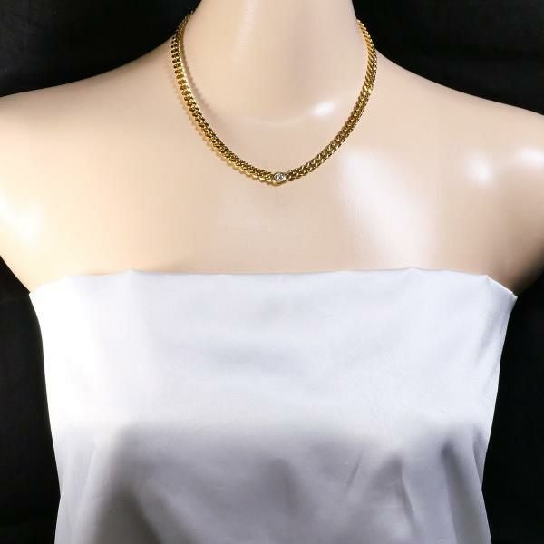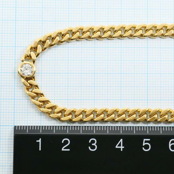 K18イエローゴールド製のボリュームあるチェーンに、ラウンドブリリアントカットの天然ダイヤモンドをあしらった高級感のあるデザインのネックレスです。ダイヤモンドは透明無色で金剛光沢を放ち、シンプルながらも重厚な存在感があります。クラリティはSI-2、丁寧な造りが際立つ逸品です。