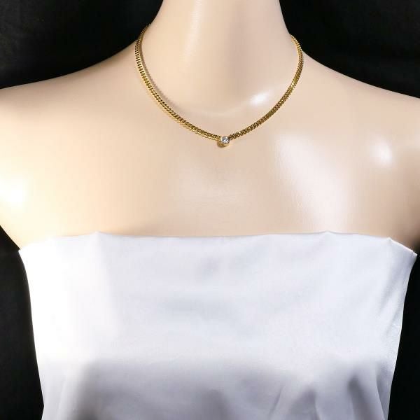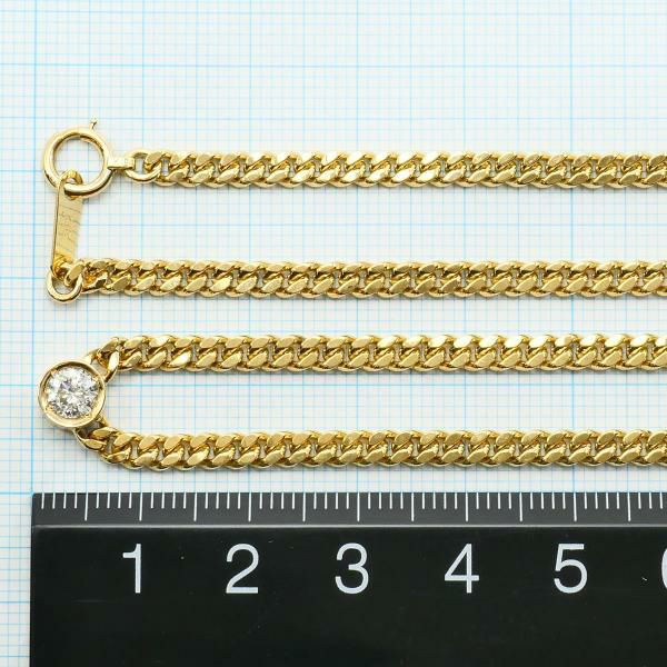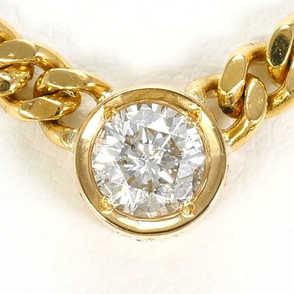 K18イエローゴールド製のチェーンに、ラウンドブリリアントカットの天然ダイヤモンドがあしらわれたデザインのネックレスです。シンプルながら存在感があり、ダイヤモンドの透明感とゴールドの温かみが美しく調和しています。上質な素材と確かな作りが際立つ品格あるジュエリーです。
