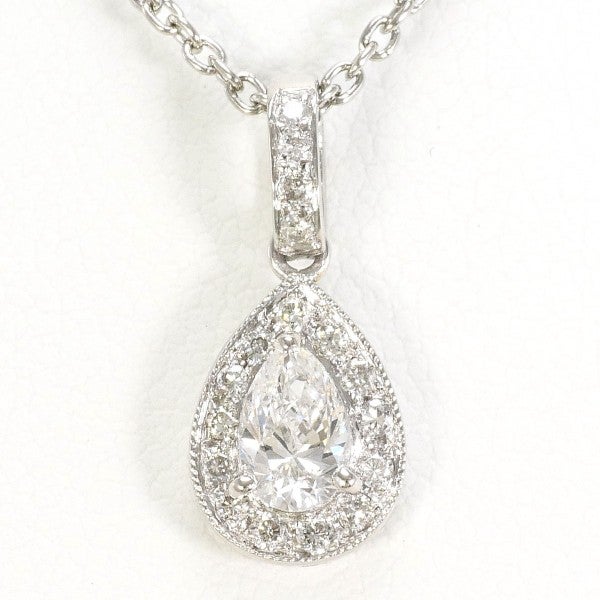 ペアシェイプカットのダイヤモンドが胸元に優雅なきらめきを与える、気品あふれるネックレス。繊細なメレダイヤが主石を包み込み、まるで一粒の雫を大切に抱くようなデザインが、女性らしさと洗練を引き立てます。どんな装いにも華を添える、上品で情熱的な一品です。