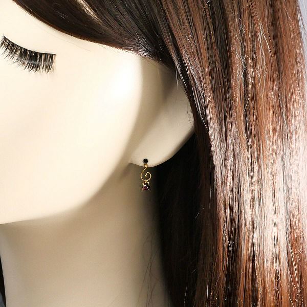 K18 18金 YG イエローゴールド ピアス ロードライトガーネット 総重量約0.7g