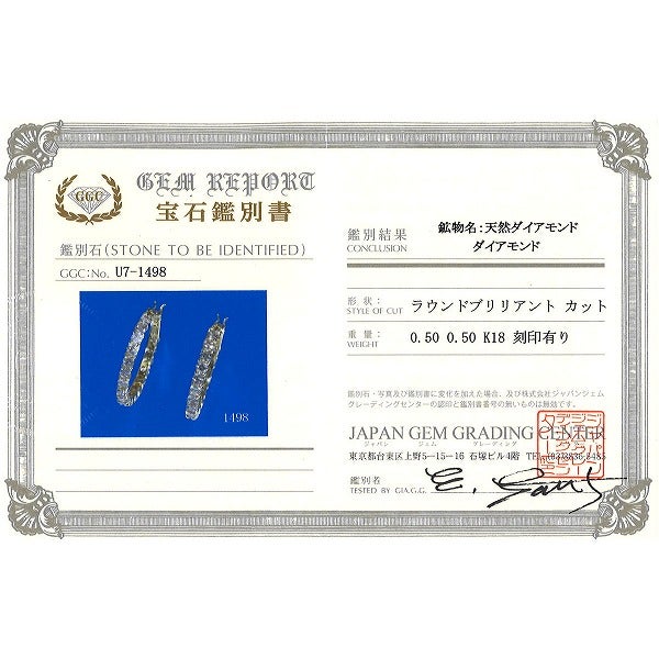 K18 18金 YG イエローゴールド ピアス ダイヤモンド 0.50 鑑別書 総重量約2.1g