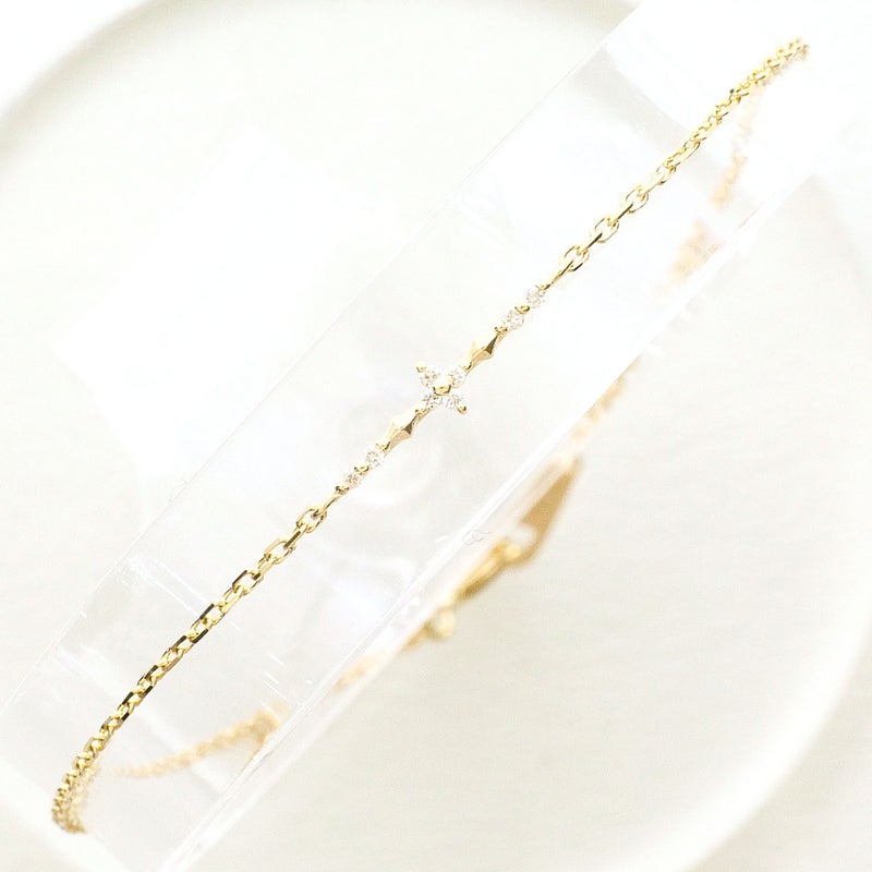 K10 10金 YG イエローゴールド ブレスレット ダイヤモンド 0.02 総重量約0.5g 17cm
