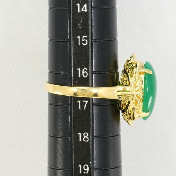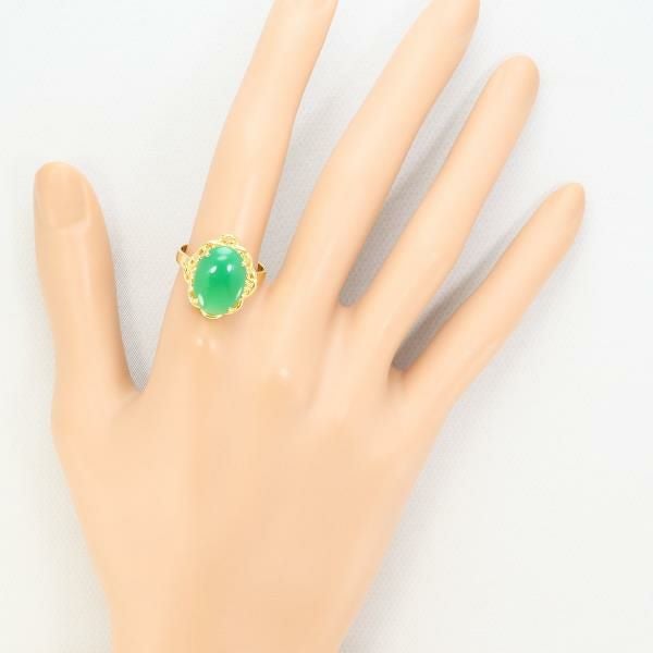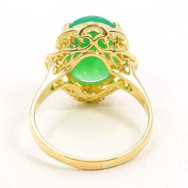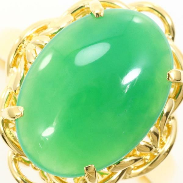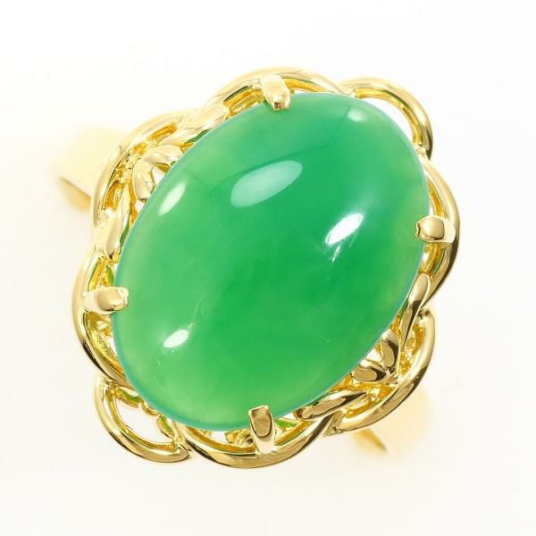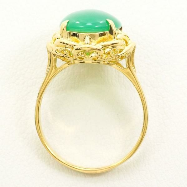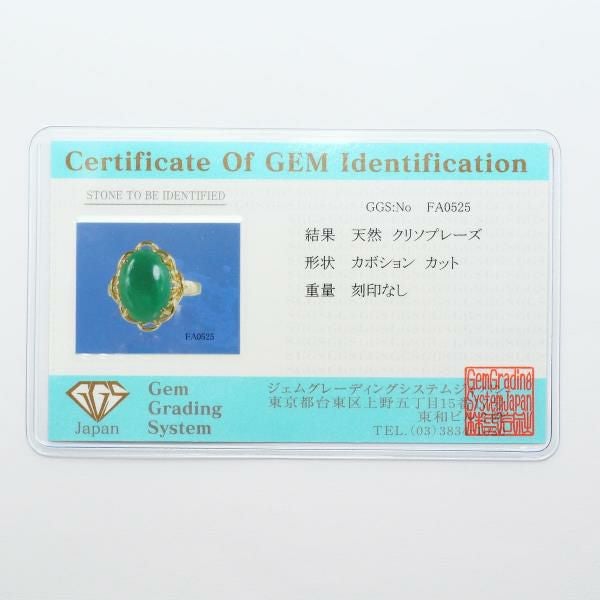 天然クリソプレーズを使用したリングは、鮮やかなグリーンが均一で美しく、滑らかなカボションカットが石の質感を最大限に引き出しています。ゴールドの枠は緻密にデザインされ、優雅な装飾が全体の印象を高めています。光を受けると石の内側から柔らかな輝きが現れ、上品で落ち着いた存在感を放ちます。