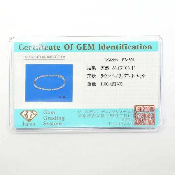 【5%OFF】K18 18金 WG ホワイトゴールド ブレスレット ダイヤモンド 1.00 鑑別書 総重量約5.3g 17.5cm
