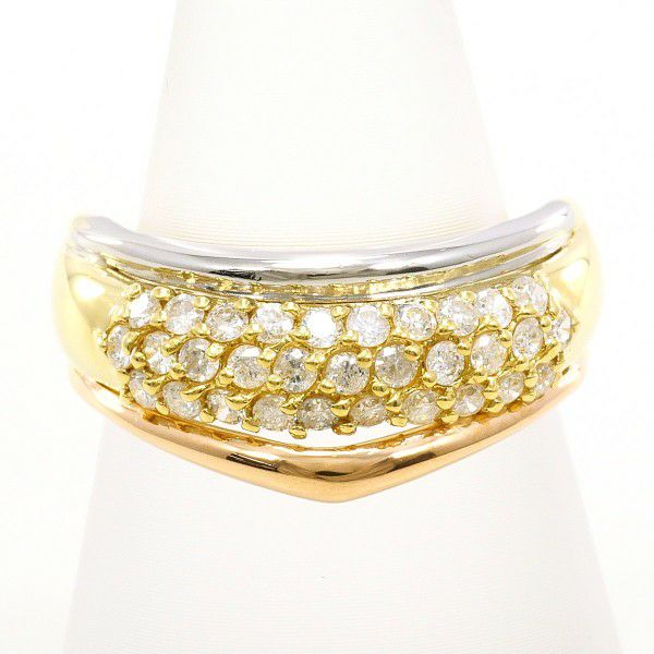 コンビカラーが美しい地金ににダイヤモンドを贅沢に敷き詰めた、存在感のあるリング。立体的なラインが指元を美しく演出し、上質な輝きが大人の装いに華やかさと品格を添えます。日常使いから特別なシーンまで幅広く活躍する一品です。