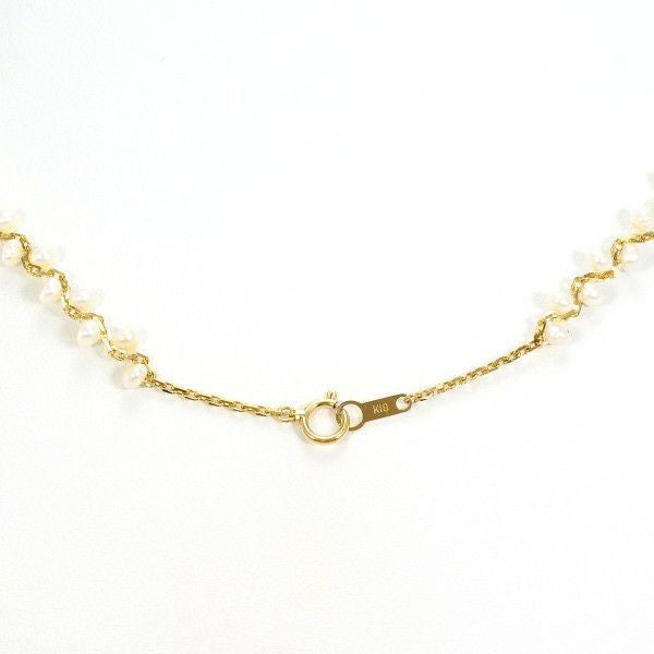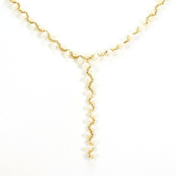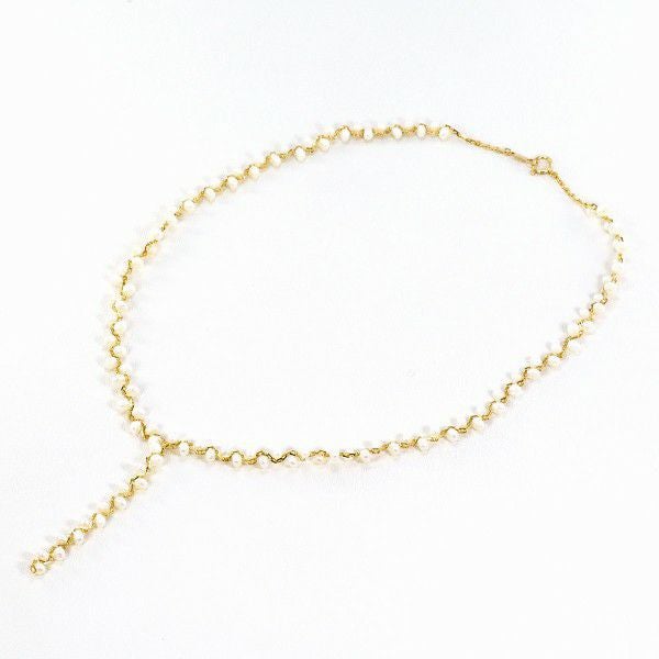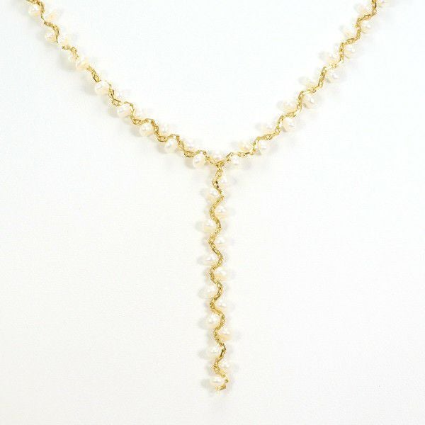淡水真珠を贅沢に連ねた繊細なネックレス。オフラウンド特有の自然な表情と、優しいホワイトの光沢がデコルテを上品に演出します。単体使いはもちろん、重ね付けにも相性が良く、装いに清楚な華やぎを添える一本です。