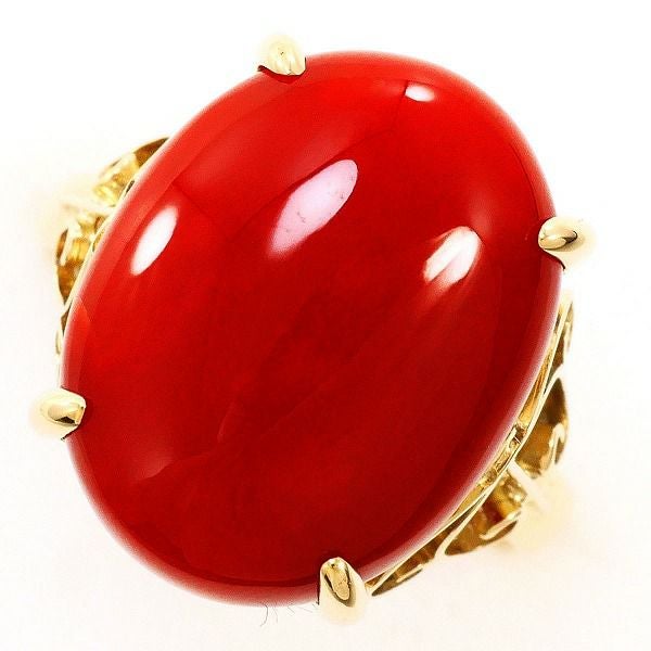 【5%OFF】K18 18金 YG イエローゴールド リング・指輪 10号 サンゴ 鑑別書 総重量約5.8g