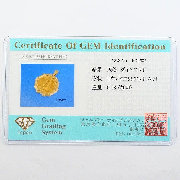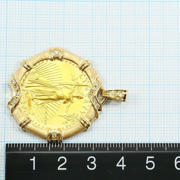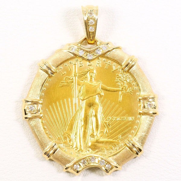 K22 22金 YG イエローゴールド K18 18金 YG イエローゴールド ペンダントトップ 1/2oz 1/2オンス ダイヤモンド 0.18 鑑別書 総重量約23.6g