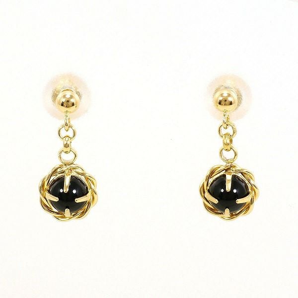 K18 18金 YG イエローゴールド ピアス オニキス 総重量約0.6g