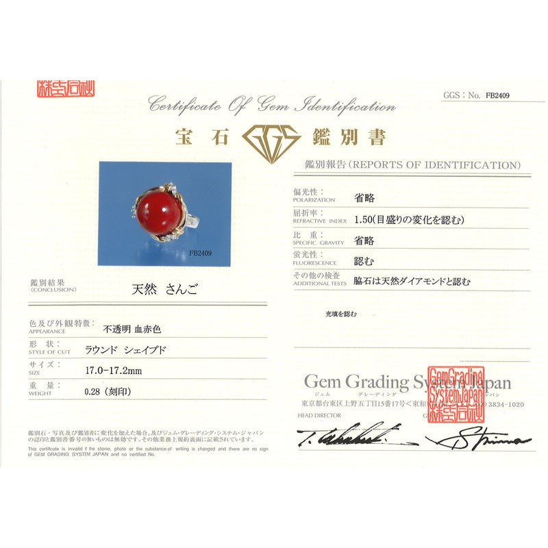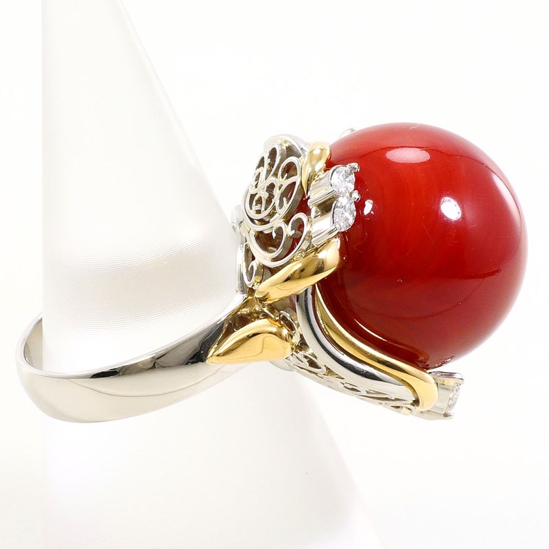 【石目】サンゴ 約17mm、ダイヤモンド 0.28ct