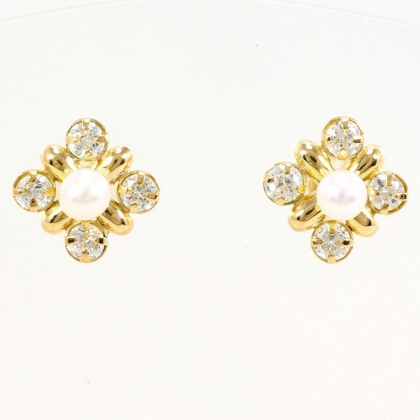 【20%OFF】K18 18金 YG イエローゴールド ピアス イミテーションパール ジルコニア 総重量約0.7g