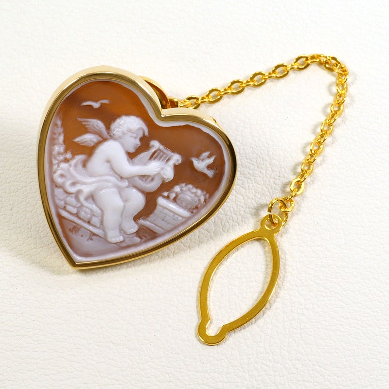 【10%OFF】 ピンブローチ K18 18金 YG イエローゴールド シェルカメオ 総重量約6.5g