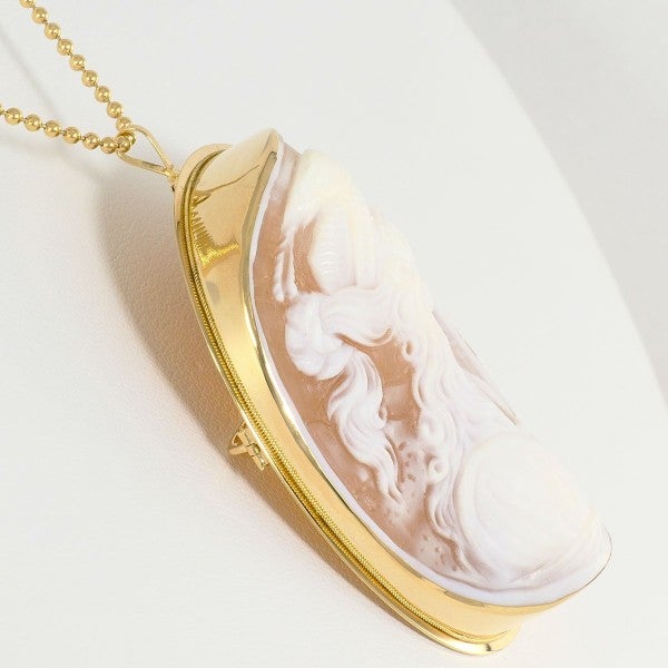 他の画像を見る 全品新品仕上げ済み!激安中古アクセサリー 【25%OFF】K18 18金 YG イエローゴールド ネックレス ブローチ シェルカメオ カード鑑別書 総重量約9.6g 約50cm 通常価格 ¥ 128,000 販売価格 ¥ 96,000 税込 在庫切れ 再入荷お知らせ お気に入りに登録する