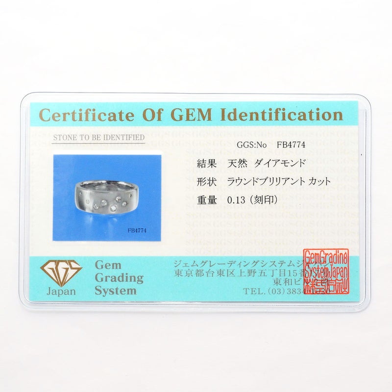 K18 18金 WG ホワイトゴールド リング・指輪 11号 ダイヤモンド 0.13 カード鑑別書 総重量約8.7g