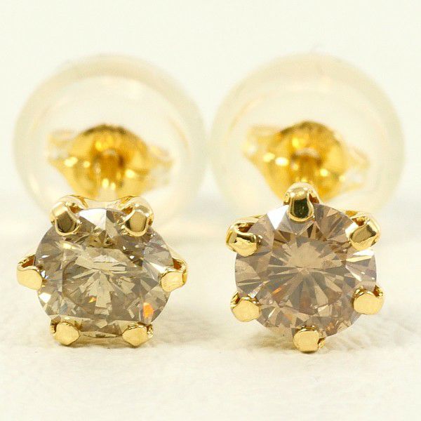 【10%OFF】K18 18金 YG イエローゴールド ピアス ブラウンダイヤ 0.22 ×2 総重量約0.5g