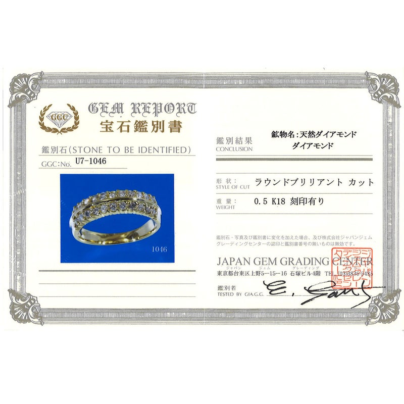 K18 18金 YG イエローゴールド リング・指輪 12.5号 ダイヤモンド 0.5 鑑別書 総重量約5.1g