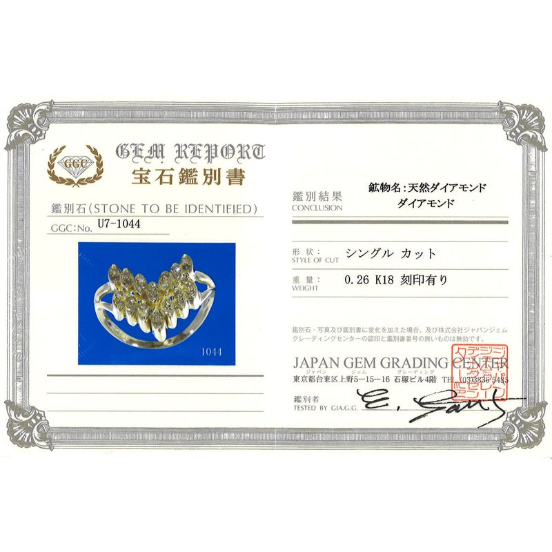 【5%OFF】 K18 18金 YG イエローゴールド リング・指輪 18号 ダイヤモンド 0.26 鑑別書 総重量約5.1g
