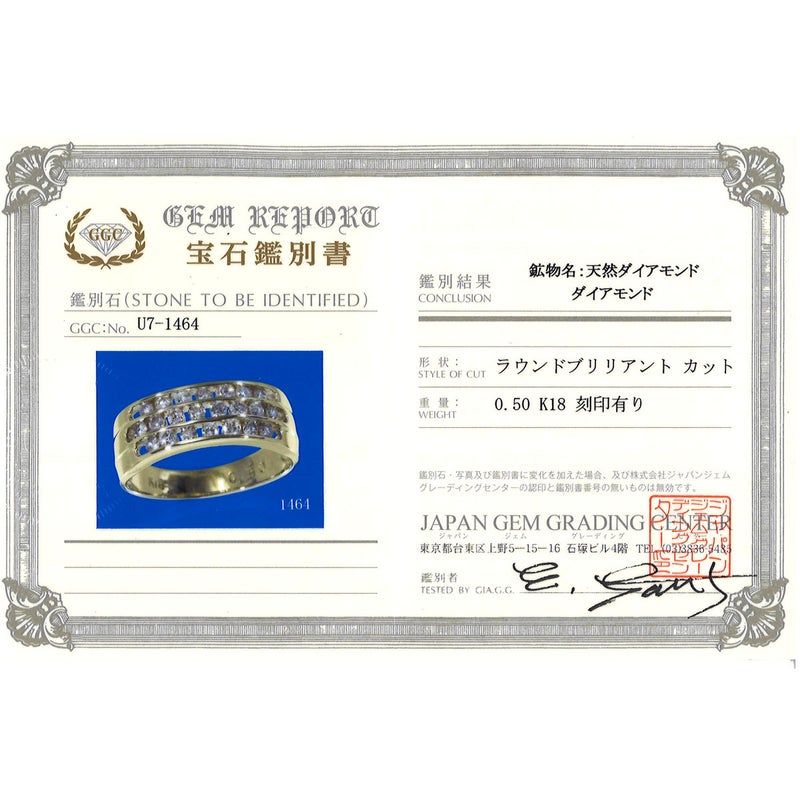 K18 18金 YG イエローゴールド リング・指輪 11号 ダイヤモンド 0.50 鑑別書 総重量約3.3g