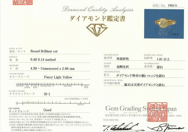 クラリティー:SI1 カラー:Fancy Light Yellow カット:Good