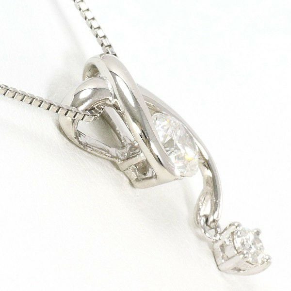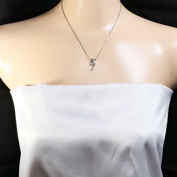 このペンダントは、流れるような立体的デザインが胸元を上品に彩り、主石のダイヤモンドが存在感ある輝きを放つ魅力的な一品です。サイドに添えられた小粒のダイヤが全体のバランスを整え、柔らかな雰囲気と華やかさを同時に演出しています