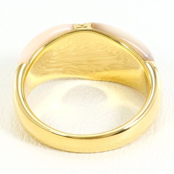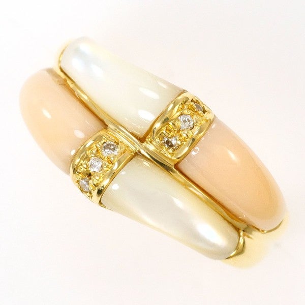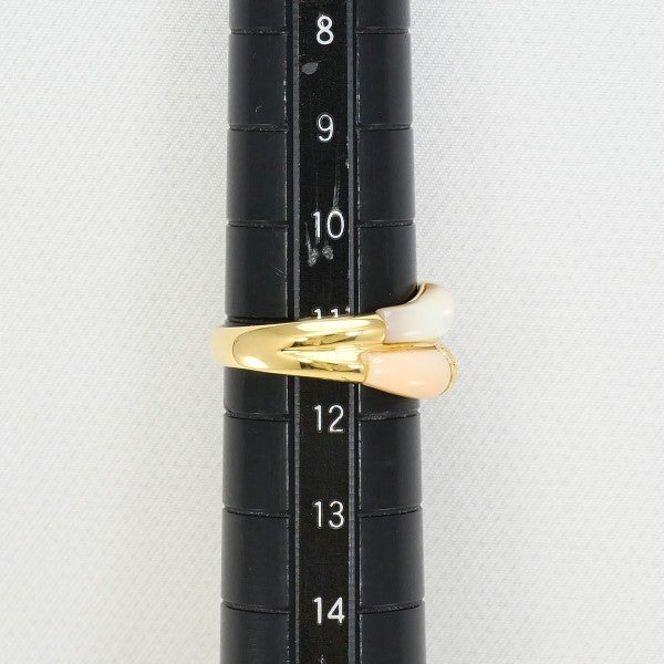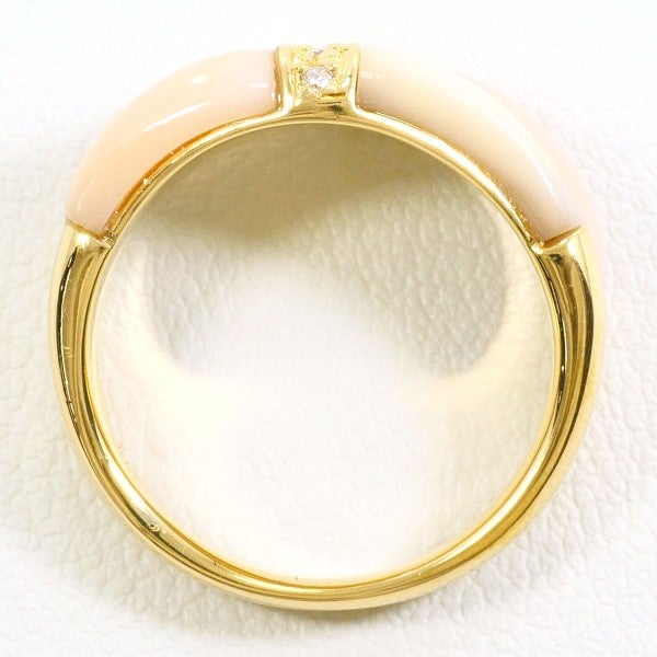 天然さんごを用いたこのリングは、柔らかな色合いが穏やかで上品な印象を与えます。白と淡いピンクが絶妙に組み合わさり、ゴールドの枠に映えて美しく調和しています。中央に配されたダイヤモンドが輝きを添え、落ち着いた雰囲気の中に高級感を引き立てています。