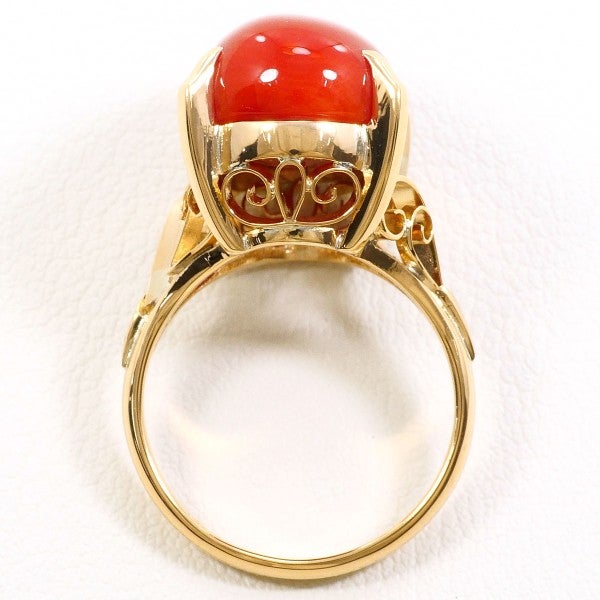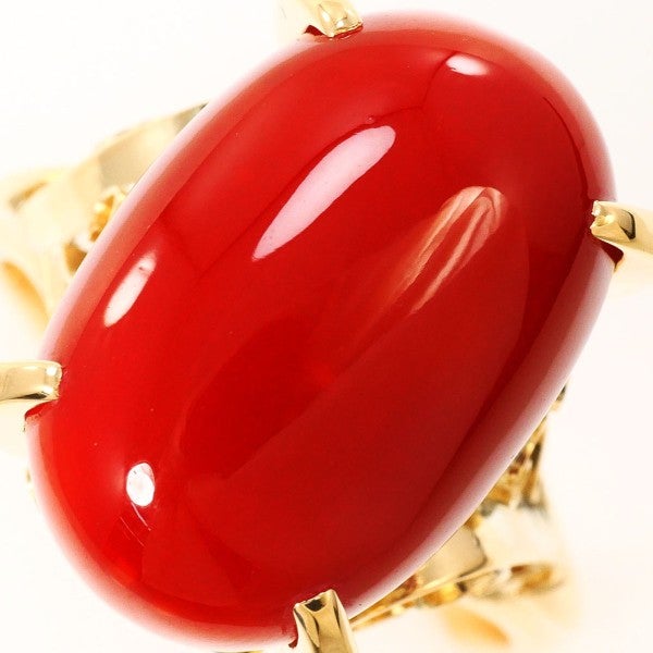 天然サンゴを贅沢に使用したK18リング。鮮やかな赤色が指元を華やかに彩り、艶やかなカボションカットが上品な存在感を放ちます。柔らかな光沢と温かみのあるデザインが魅力の逸品です。