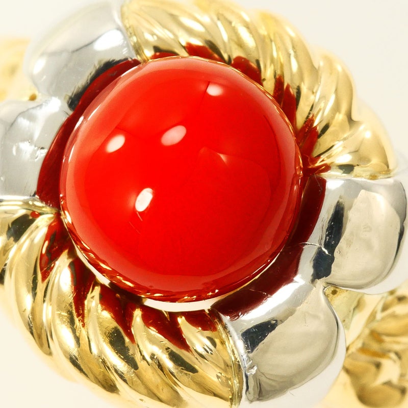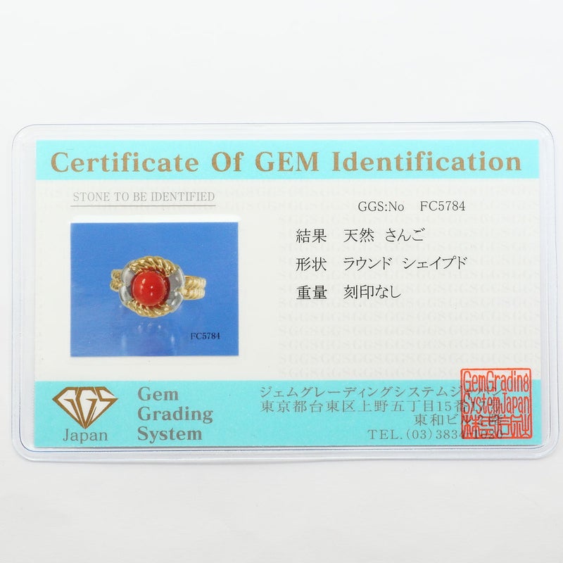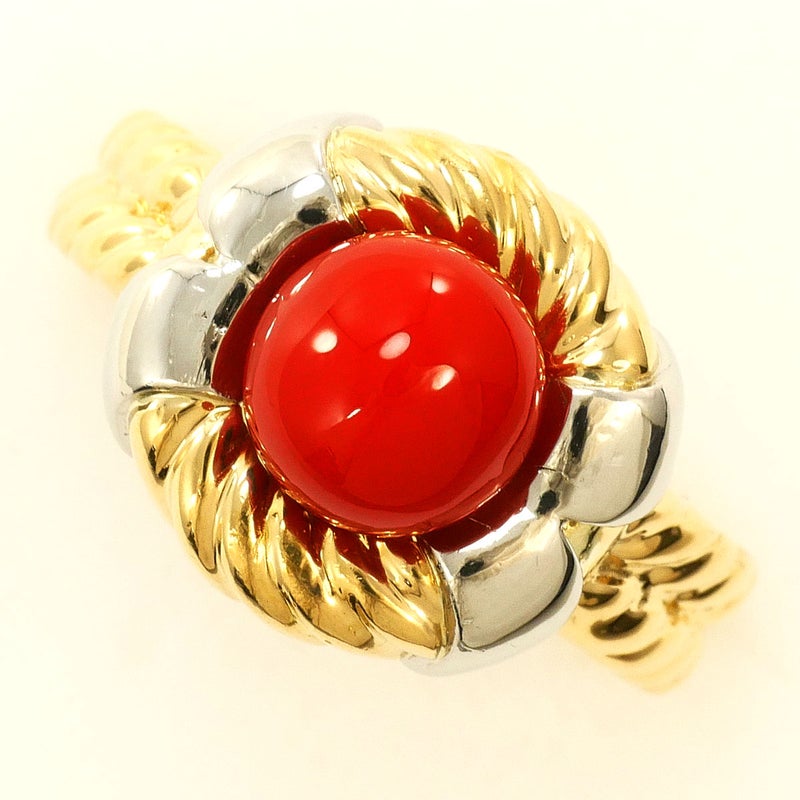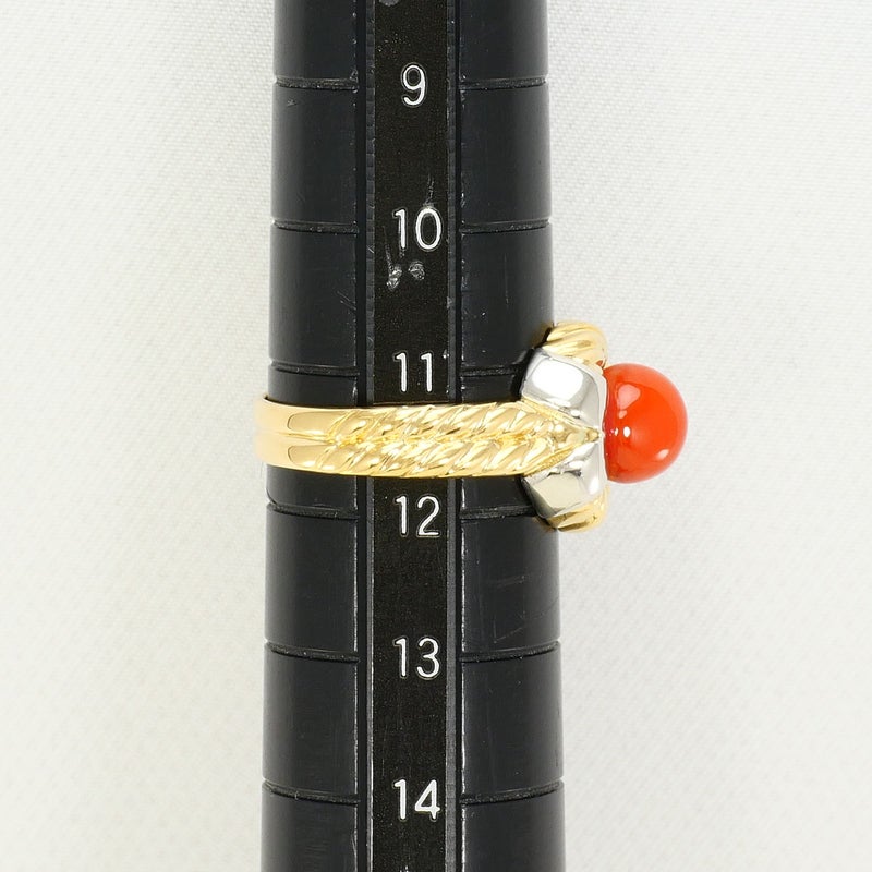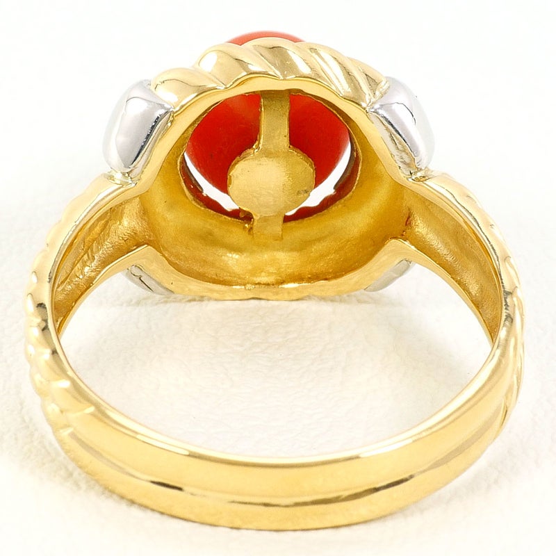 【10%OFF】 PT900 プラチナ K18 18金 YG イエローゴールド リング・指輪 11.5号 サンゴ カード鑑別書 総重量約5.5g