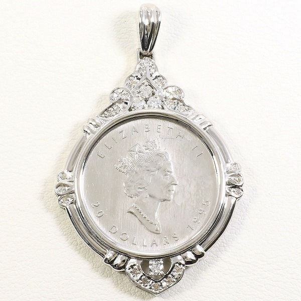 【5%OFF】PT1000 プラチナ PT900 プラチナ ペンダントトップ メイプルリーフ 1/2oz 1/2オンス コイン 白金 ダイヤモンド 0.36 鑑別書 総重量約26.0g