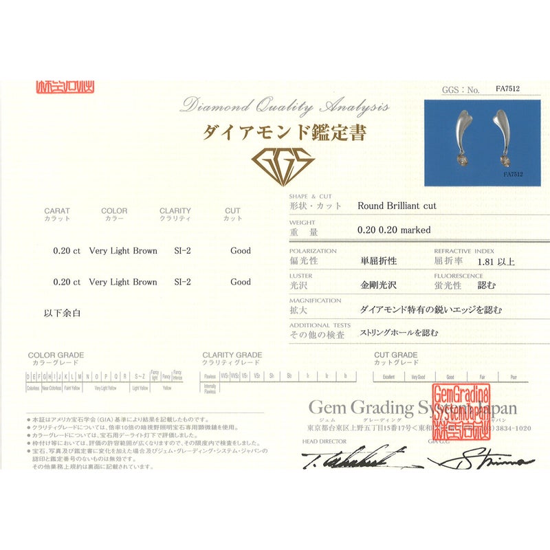 ※その他の状態:0.20ct クラリティー:SI2 カラー:Very Light Brown カット:Good