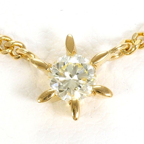 透明度の高い天然ダイヤモンドを繊細な6本爪で留めたネックレス。ラウンドブリリアントカットならではの鋭い煌めきが胸元で明確な存在感を放ちます。イエローゴールドの温かみが肌を美しく見せ、装いに自然な華やかさを添える一品です。