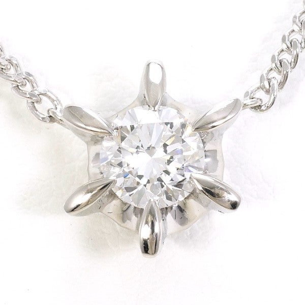 洗練されたプラチナの輝きに、ラウンドブリリアントカットのダイヤモンドが凛とした光を宿すエレガントなペンダント。端正な爪留めが光を余すことなく引き出し、デコルテを上品に飾る一本です。