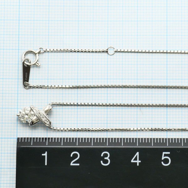 流れるような曲線美が印象的なトップに、0.539ctの輝きを放つ天然ダイヤモンドが静かに揺れます。繊細なメレダイヤが添えられ、清らかな煌めきをさらに引き立てるデザインです。Gカラーの澄んだ白さと、ダイヤの気品ある輝きが胸元を優美に飾り、見る者の心を惹きつける特別な一本です。