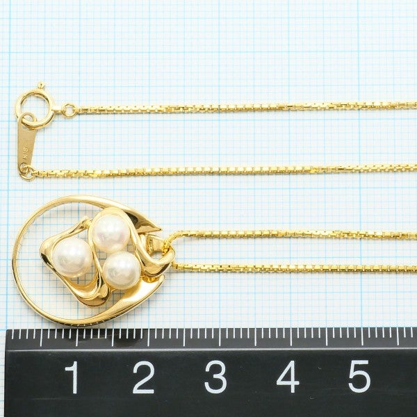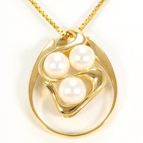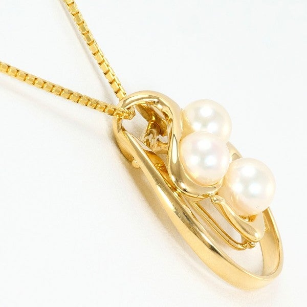 3粒のアコヤ真珠が描く柔らかなリズムと、艶やかなゴールドの曲線が優しく包み込み、気品とぬくもりを添えるネックレスです。日常にも特別な日にも寄り添う、優雅な存在感ある一品です。