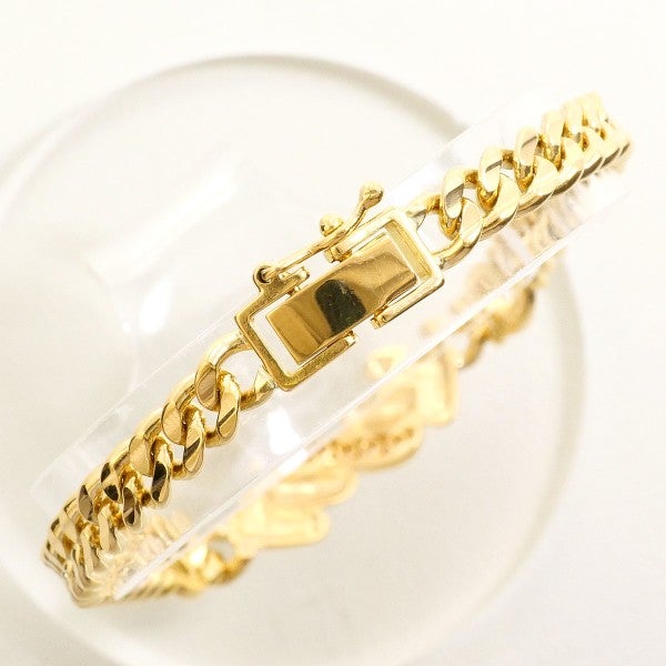 K18製の上品なブレスレットで、中央には天然ダイヤモンドがあしらわれ、ゴールドの艶やかな輝きの中に繊細な光を添えています。立体的なデザインが美しく、流れるようなフォルムが手元を優雅に見せます。ほどよいボリューム感で、フォーマルにもカジュアルにも映える洗練されたジュエリーです。