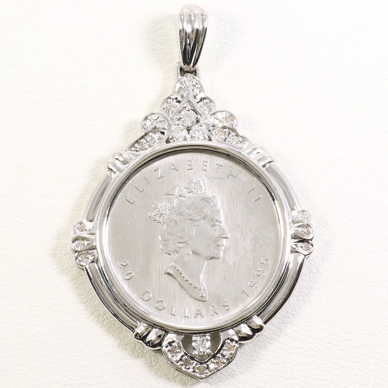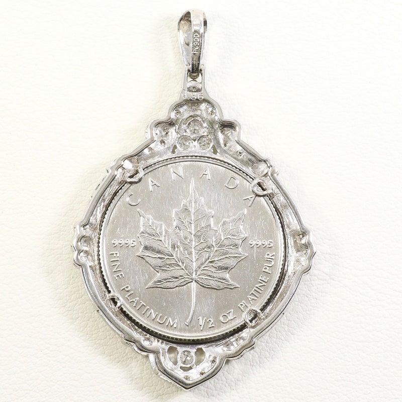 【10%OFF】 メイプルリーフ PT1000 プラチナ PT900 プラチナ ペンダントトップ 1/2oz 1/2オンス コイン 白金 ダイヤモンド 0.36 カード鑑別書 総重量約26.0g