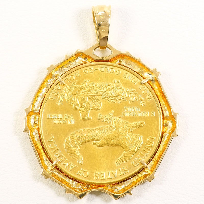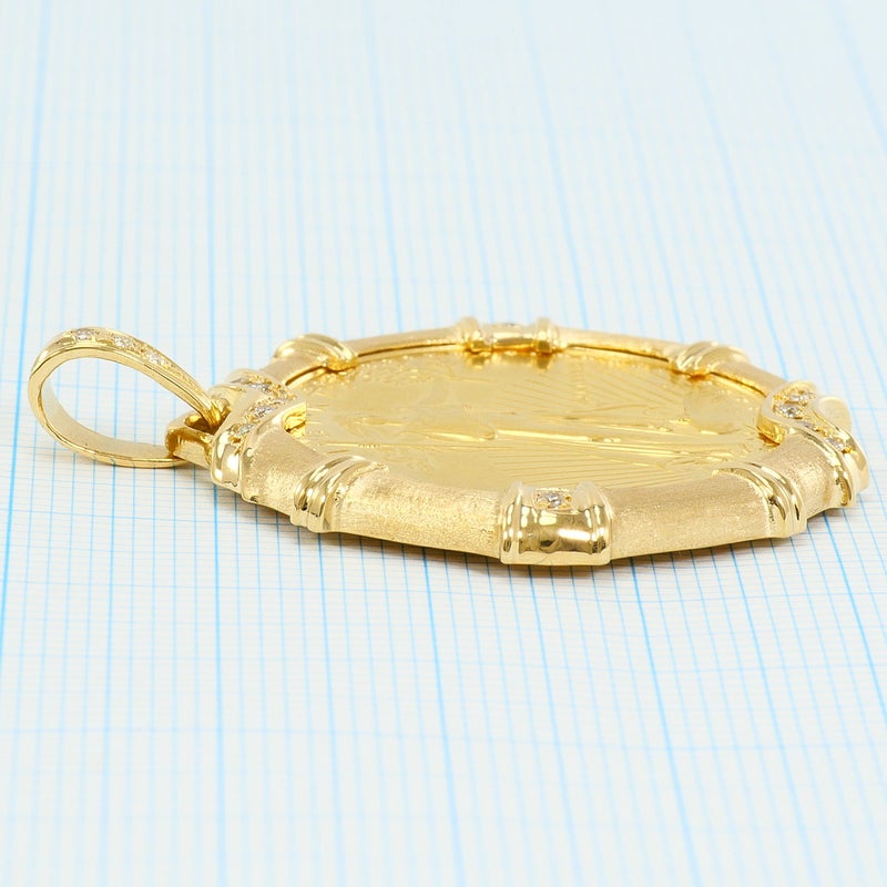 【5%OFF】 K22 22金 YG イエローゴールド K18 18金 YG イエローゴールド ペンダントトップ 1/2oz 1/2オンス ダイヤモンド 0.18 カード鑑別書 総重量約23.6g