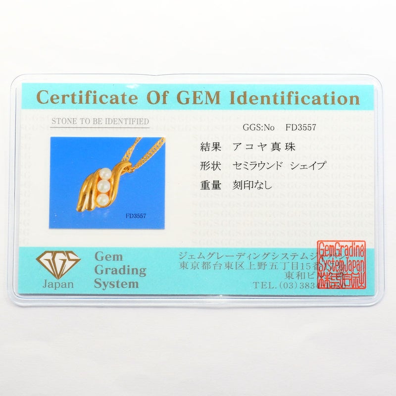 【5%OFF】 K24 24金 YG イエローゴールド ネックレス アコヤ真珠 カード鑑別書 総重量約12.5g 43cm