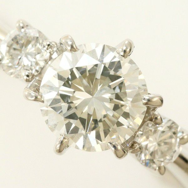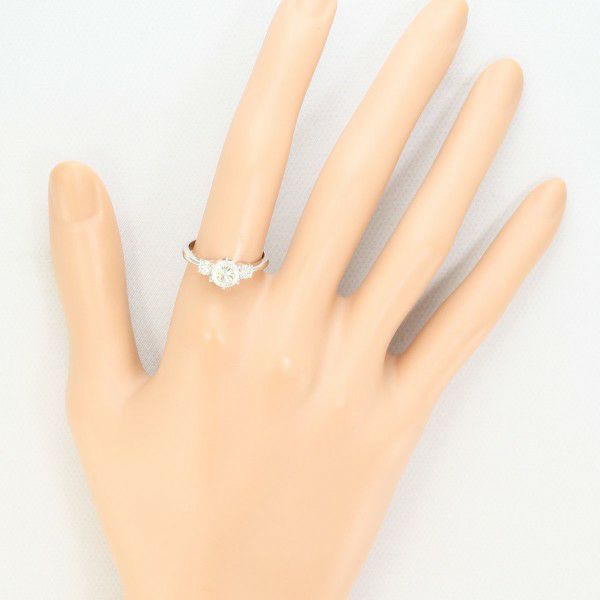 中央に存在感あるダイヤモンドを据え、両脇に配されたサイドストーンが一層の華やぎを添える美しいリングです。透明感のある輝きが手元を明るく見せ、上品でありながら特別感もしっかり感じられる仕上がりです。普段使いからフォーマルまで幅広く活躍し、身に着けるたびに気分を高めてくれる魅力的な一本です。