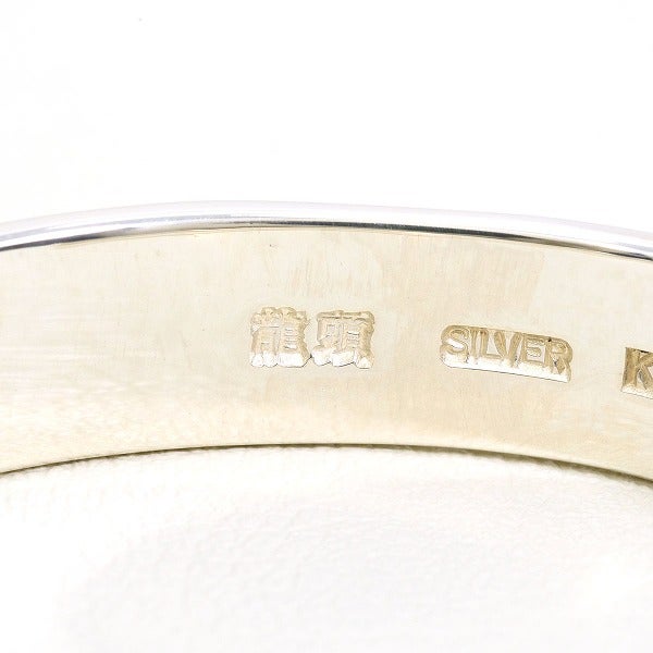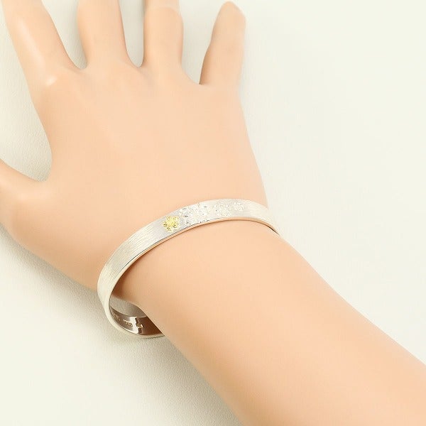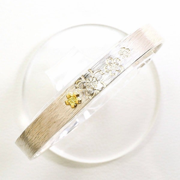 龍頭 川面桜平打ち K18 18金 YG イエローゴールド シルバー バングル 総重量約18.0g
