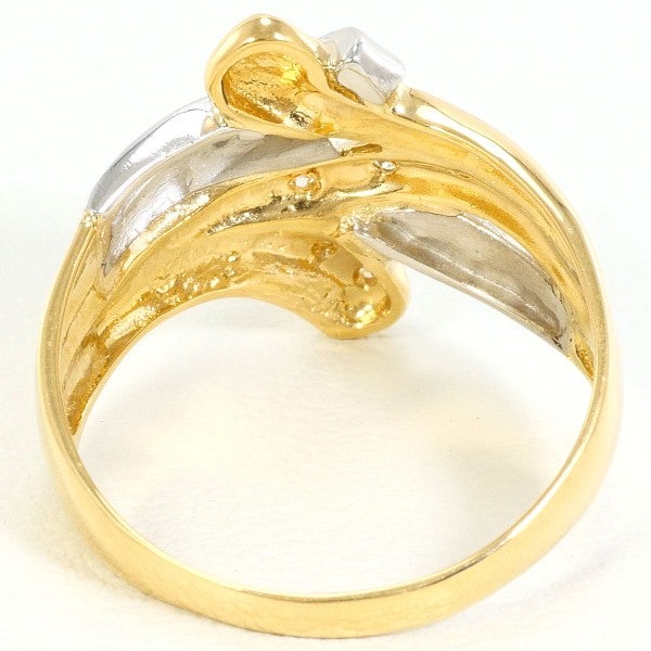 しなやかに流れるラインが美しい、ゴールドとプラチナのコンビリングです。中央にはラウンドブリリアントカットの天然ダイヤモンドがさりげなく輝き、上品な存在感を放ちます。繊細な立体感と躍動感のあるフォルムが、手元に華やぎと洗練を添える逸品です。