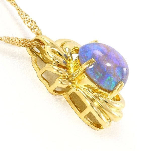 4. 【30%OFF】K18 18金 YG イエローゴールド ネックレス ブラックオパール カード鑑別書 総重量約4.9g 約41cm