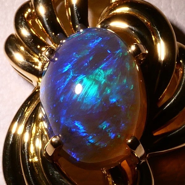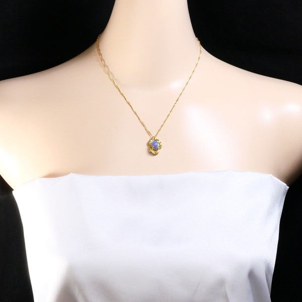 幻想的な輝きを放つブラックオパールが、複雑に絡み合うゴールドのデザインに優雅に包まれたネックレス。まるで夜空に咲く光の華のように、見る者の心を惹きつけてやまない仕上がりは、虹のように揺らめく遊色と立体的な造形美が、唯一無二の存在感を放っています。