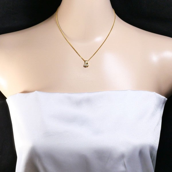 中央に煌めくダイヤモンドを、しなやかに包み込むような独創的なデザインが心を惹きつけるネックレス。ゴールドの繊細なチェーンと一体となり、品格と愛らしさを兼ね備えた佇まいは、大切な瞬間にそっと寄り添う逸品です。